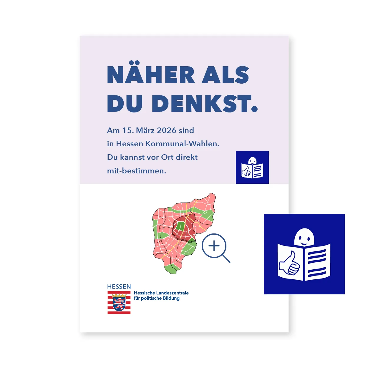 Die Hessische Landeszentrale für politische Bildung bietet Materialien zur Kommunalwahl am 15. März 2026 an, die Sie bei uns kostenlos und portofrei bestellen können.