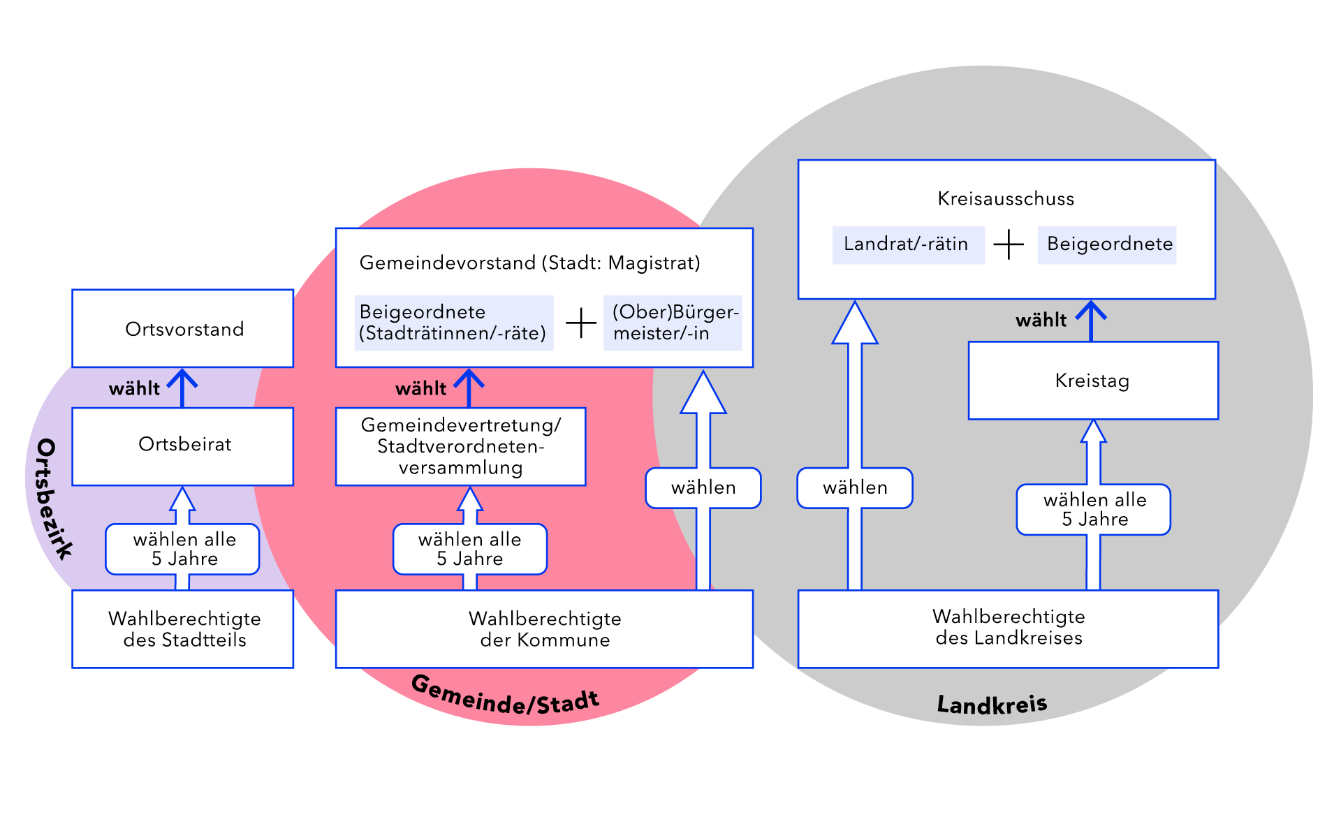 - Ortsbeiräte: in Städten oder Gemeinden mit Ortsbezirken