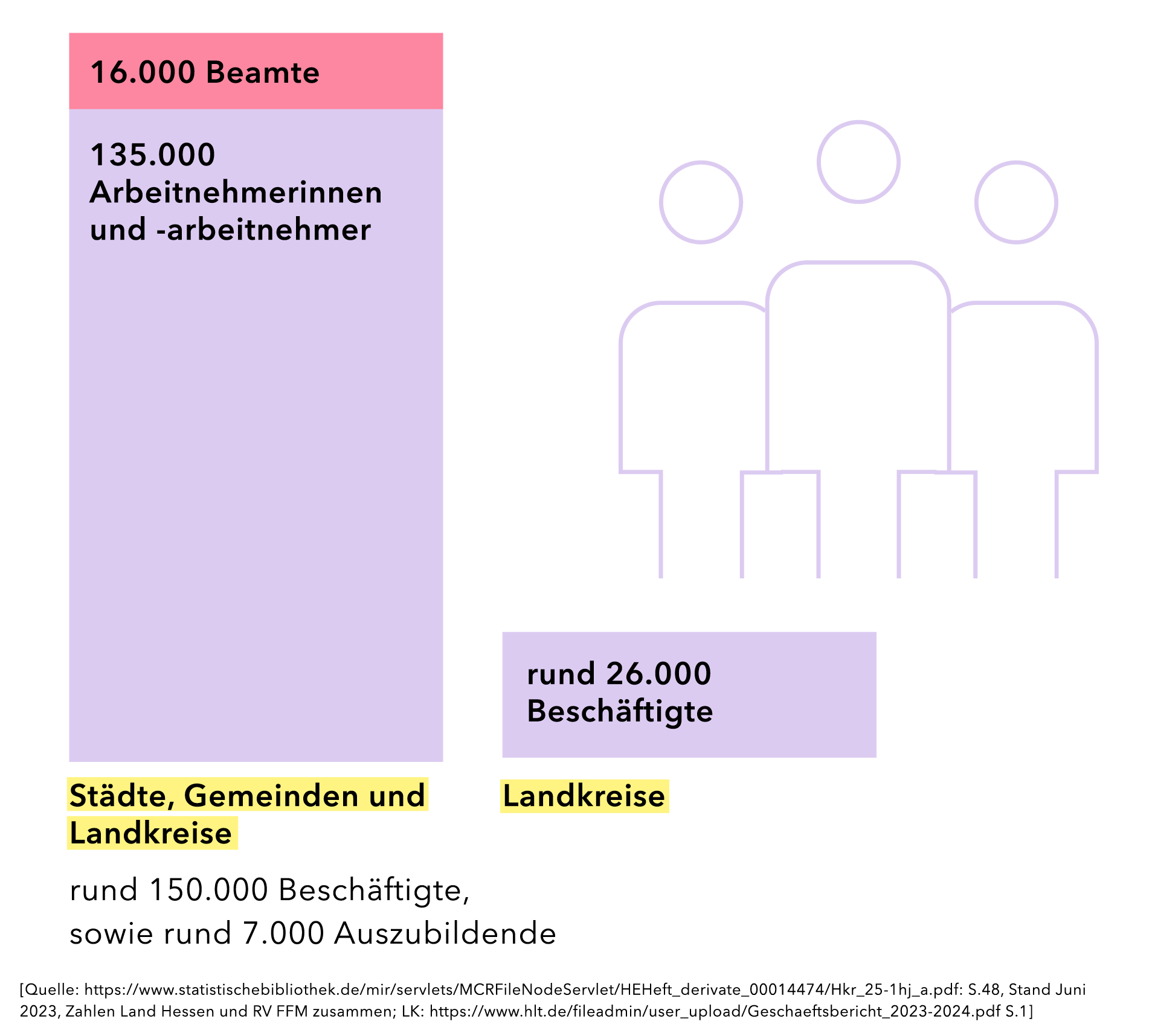 Insgesamt sind in den hessischen Städten, Gemeinden und Landkreisen rund 160.000 Menschen beschäftigt, darunter auch rund 7.000 Auszubildende.